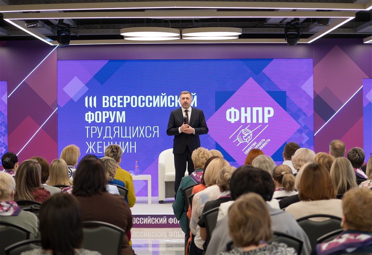 В рамках мероприятия состоялась встреча с председателем ФНПР Сергеем Черногаевым. Говорили о роли профсоюзов в реализации государственной политики и активном участии женщин в принятии решений. Сергей Черногаев подчеркнул: